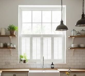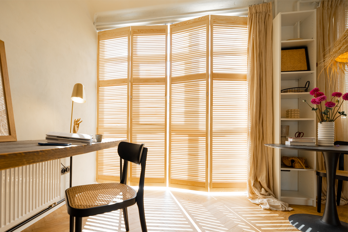 Half-height shutters that maintain privacy at the bottom while keeping natural light flowing in.